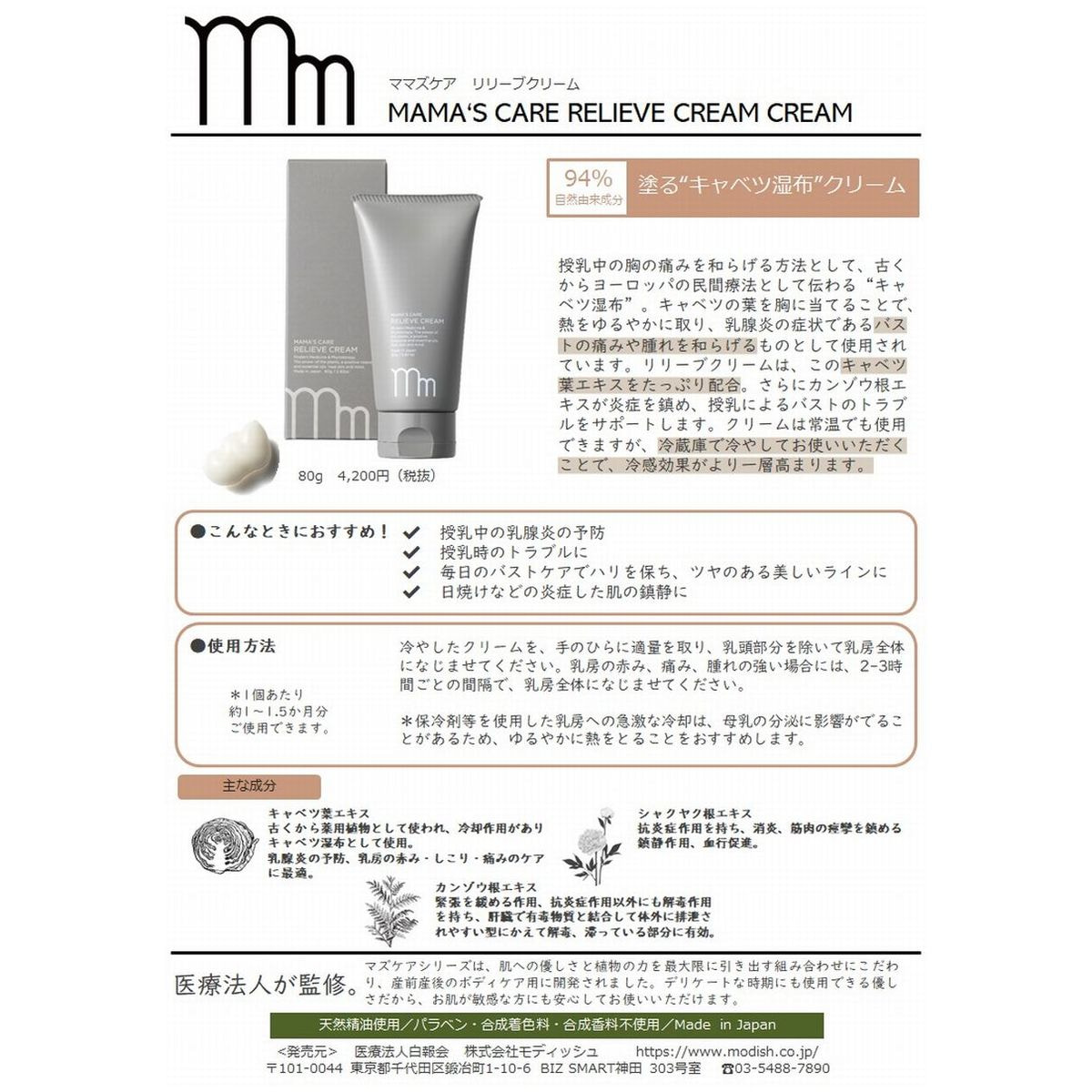 商品名:ママズケア リリーブクリーム 80g